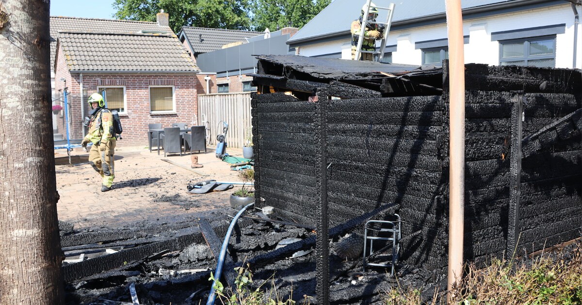‘S GRAVENMOER - Een tuinhuisje aan de Emmastraat in ’s Gravenmoer is donderdagmiddag afgebrand. Ook enkele schuttingen en een haag gingen in vlammen op.