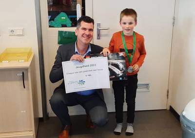 MADE - Drimmelen heeft een nieuwe ‘jeugdheld’. De 8-jarige Roel van der Maden kreeg donderdag op zijn school in Oosterhout van wethouder Jürgen Vissers een jeugdlintje. De jonge Madenaar ontving de onderscheiding voor het vele opruimwerk dat hij in zijn buurt en dorp doet.