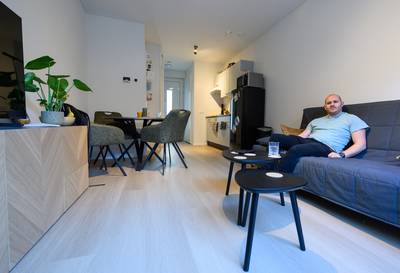 TERHEIJDEN - Als Bram Jespers uit zijn slaapkamerraam kijkt, ziet hij de kerktoren van de Antonius Abt. ,,Dat voelt goed, zo midden in Terheijden, waar ik mijn leven heb en mijn vrienden en familie wonen.†Hij is een van de nieuwe bewoners in een hofje waar afgelopen zomer zestien duurzaam verplaatsbare woningen zijn gerealiseerd.