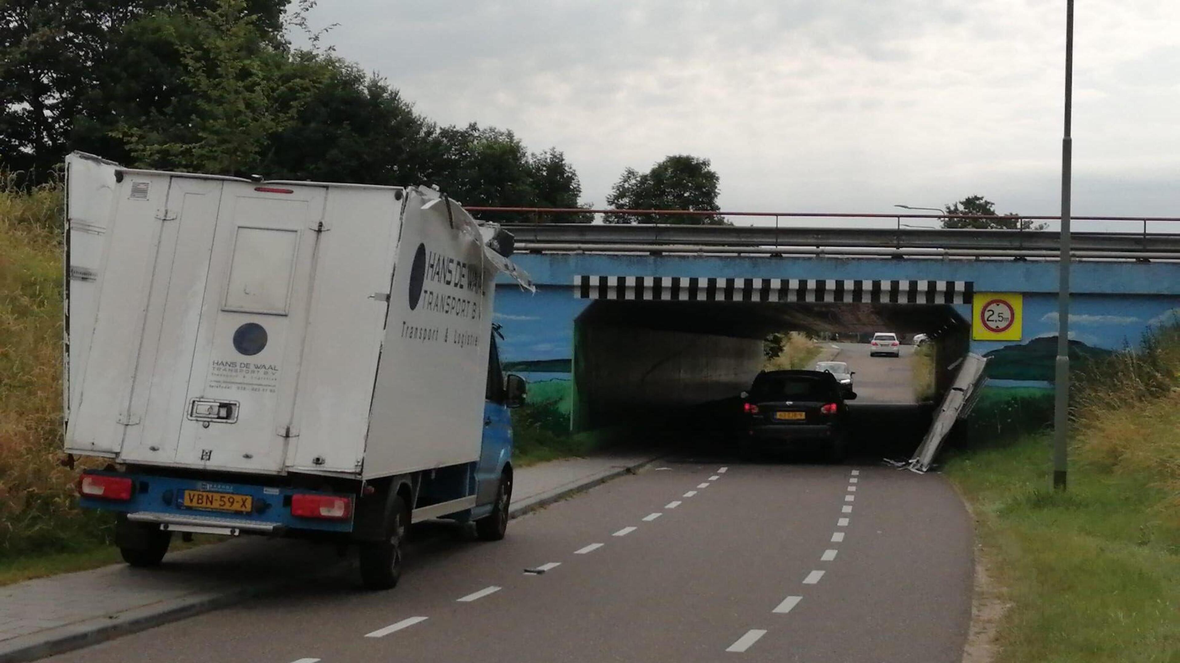 Een bestelbus van heeft zich zaterdagavond vastgereden in een tunnel aan de Stationsstraat in Gronsveld. De bus raakte daarbij zwaar beschadigd en verloor een deel van het dak van de laadruimte.