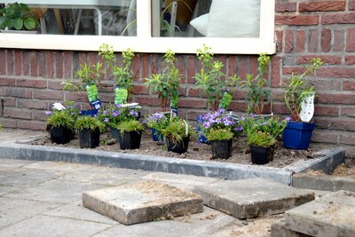 De Groenbus gaat voortuinen in Woensel-Zuid gratis vergroenen. Hoveniers halen tegels weg en planten bloemen en struiken.
