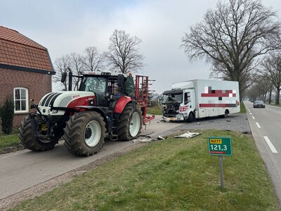 ELSENDORP/VENHORST - Een vrachtwagen en een tractor zijn dinsdagochtend rond 09.20 uur hard met elkaar in botsing gekomen. Dat gebeurde op de N277 tussen Elsendorp en Venhorst.