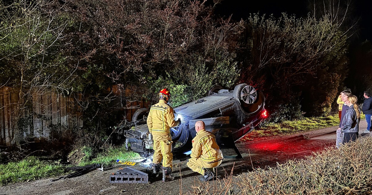 ELSENDORP - Op de N277 heeft donderdagavond een eenzijdig ongeluk plaatsgevonden, een auto sloeg over de kop en belandde op de kop op het fietspad. Een inzittende raakte gewond en is door ambulancepersoneel verzorgd.
