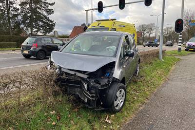HULTEN - Een man en een vrouw zijn zondagochtend lichtgewond geraakt bij een botsing op de Rijksweg in Hulten. Beide auto's liepen flinke blikschade op.