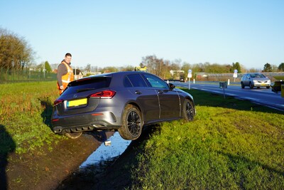 HULTEN - Het is vrijdagochtend erg glad op de Burgemeester Ballingsweg in Hulten. Nadat een strooiwagen van de weg gleed, is ook een andere auto de pineut.