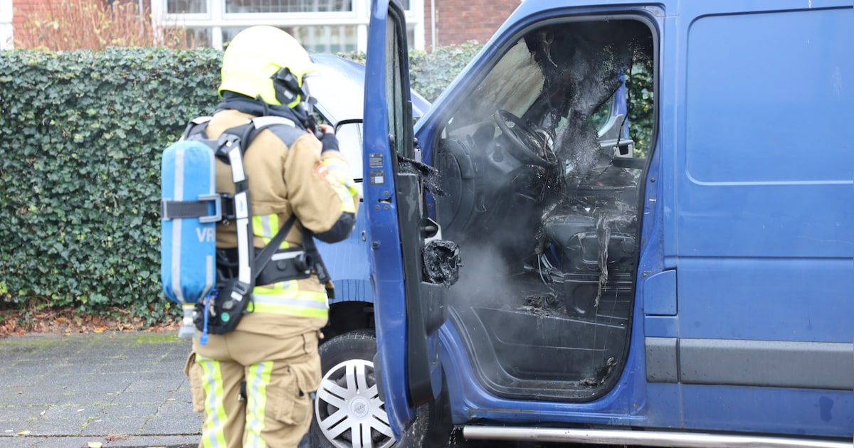Een bestelbus is maandagochtend al rijdend in brand gevlogen op de Heemsteedse Dreef in Heemstede. De inzittenden konden tijdig het voertuig verlaten.