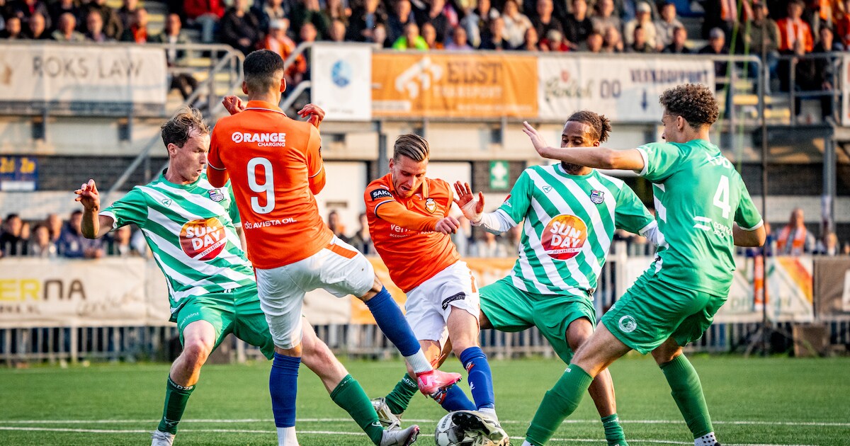 Rellende XerxesDZB-fans in het RBC Stadion en vuurwerk op het veld bij het duel van Poortugaal. Nee, promotiemateriaal was het niet. Poortugaal is bovendien uitgeschakeld in de strijd om promotie naar de derde divisie en XerxesDZB wacht een schier onmogelijke monsterklus. SHO, Nieuwenhoorn en VOC zijn nog volop in de race.