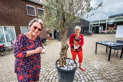 GOOR - Positieve woorden als troost, veerkracht en tevredenheid, geschreven op witte stenen, worden op zaterdag en zondag bij de olijfboom op het kerkplein bij de Hofkerk in Goor geplaatst. Maar er is ook ruimte voor verdriet en diepe wensen gericht aan God. ‘Mag mijn zusje weer beter worden?’