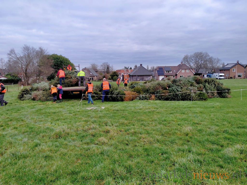 De start van de Maarkelse Boake is vanmorgen begonnen met het ophalen van de kerstbomen in het dorp. De bomen zijn alvast op de plek gelegd in de weide van Hargeerds aan de Zonneweg, waarmee de vrijwilligers een basis hebben gelegd voor de Maarkelse Boake die op eerste paasdag zal worden ontstoken. Voor het zover is zullen de bouwers nog het nodige werk moeten verrichten.