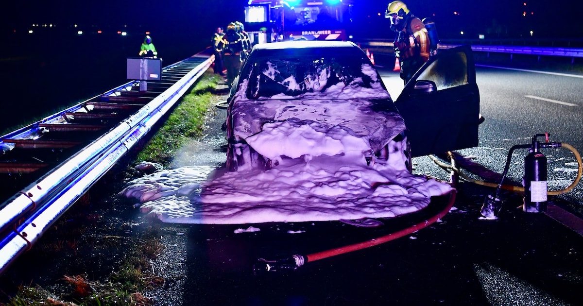Een auto is woensdagavond in vlammen opgegaan op de A7 bij Middenmeer. De inzittenden kwamen met de schrik vrij.
