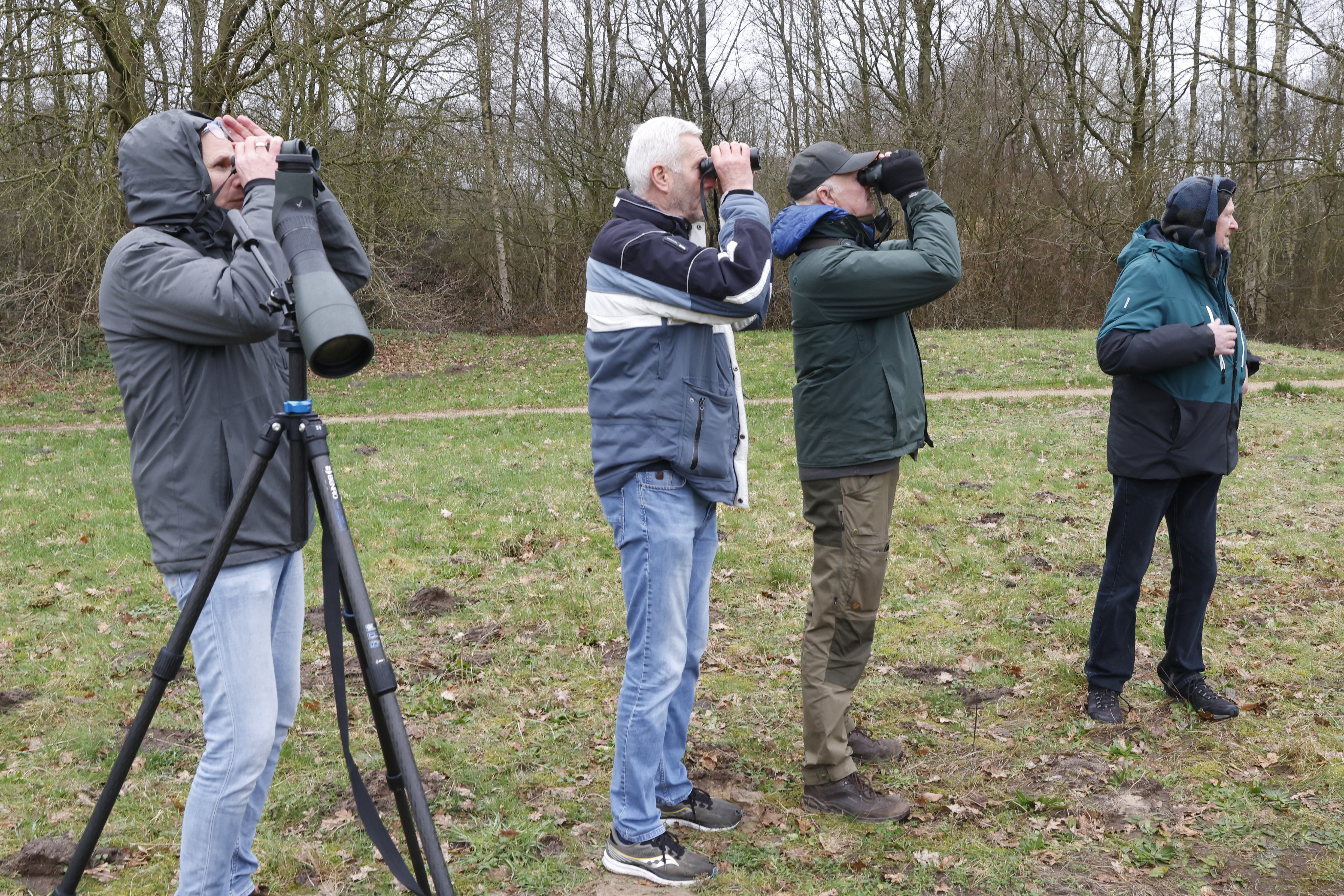 Op een veldje, op steenworp afstand van de Koggewagen in de Blaricumse Bijvanck, is het maandagochtend een drukte van belang. Zeker tien vogelaars zijn hiernaartoe gekomen om een glimp op te vangen van de witstuitbarmsijs, een arctische zangvogel die niet vaak in Nederland is te zien.
