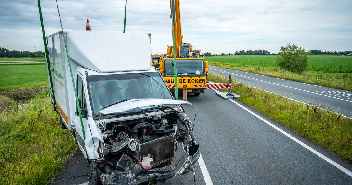 Een bergingsbedrijf heeft dinsdagochtend een zwaar beschadigde bestelbus uit het water langs de N207 bij Leimuiden getakeld.