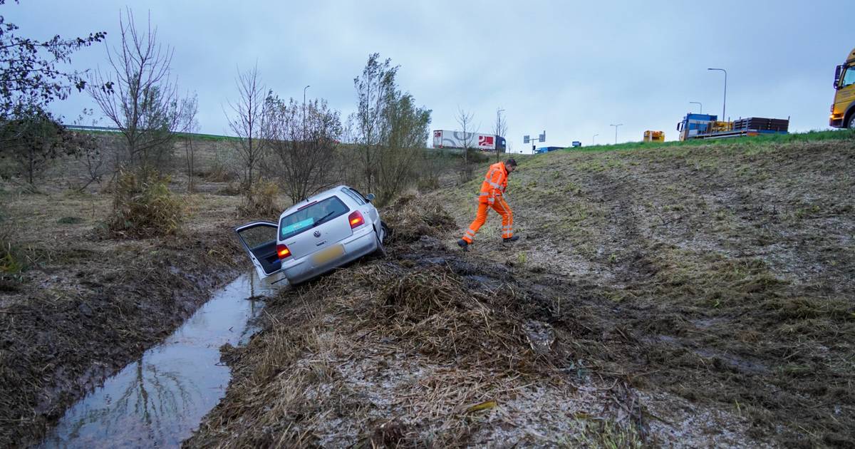Een automobilist is woensdagochtend van de weg afgeschoten op de afrit naar de N307 vanaf de A7 bij Berkhout. De auto kwam meters verderop tot stilstand in de berm.