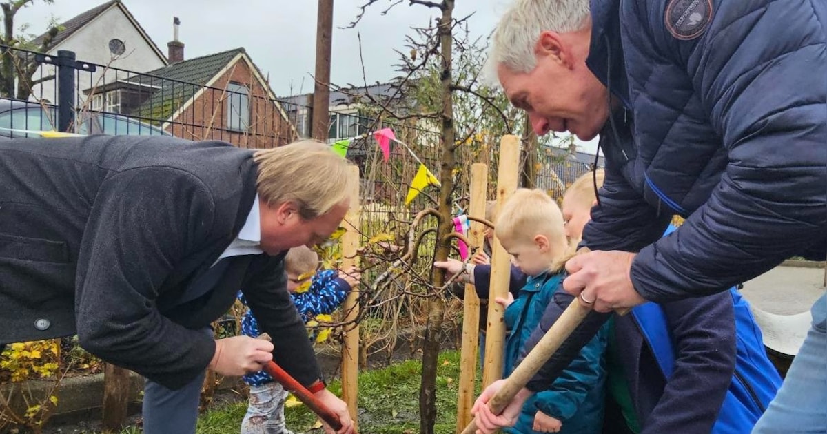 Kinderen van Kinderopvang De Beestenboel hebben gisteren een appelboom geplant. Dit gebeurde tijdens Nationale Boomfeestdag.