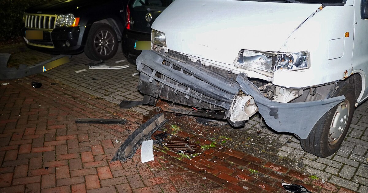 Een automobilist botste in de nacht van donderdag op vrijdag tegen een geparkeerde camper en auto op de Oranjestraat in Noord-Scharwoude. De bestuurder is doorgereden met zijn beschadigde auto.