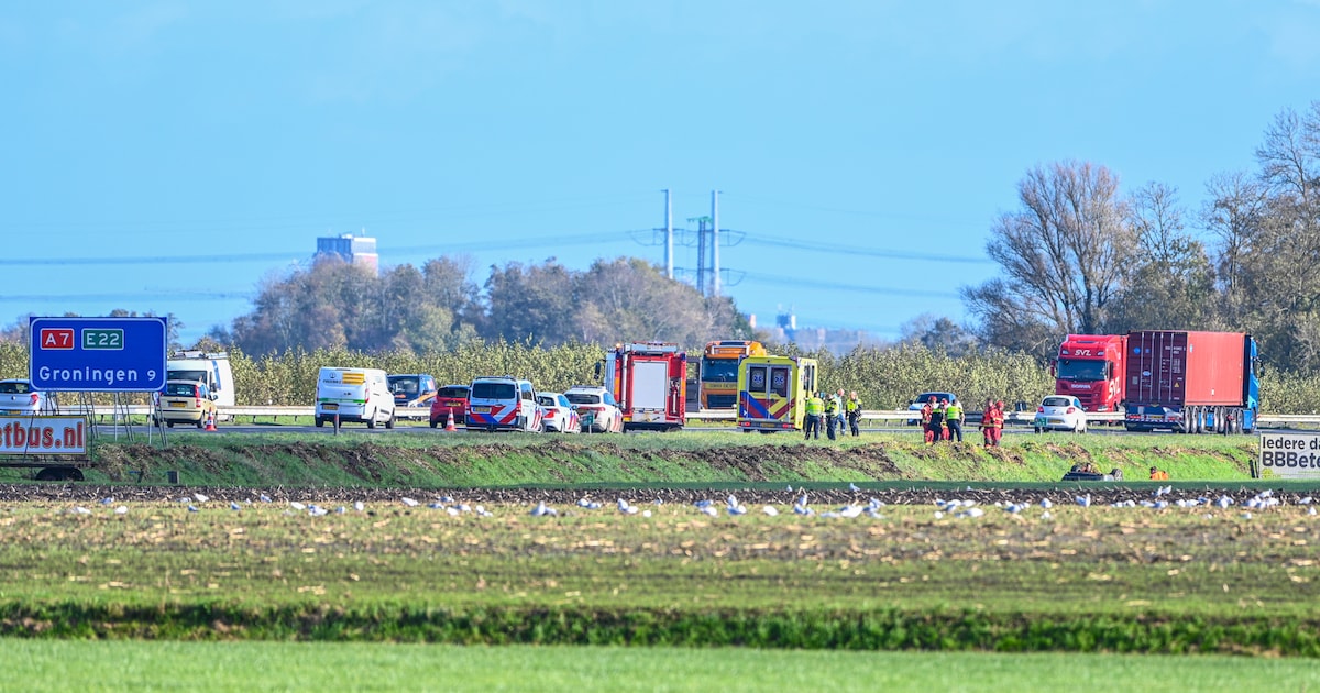 Op de A7 bij Lettelbert is donderdagochtend een auto van de weg geraakt en ondersteboven in de sloot beland.