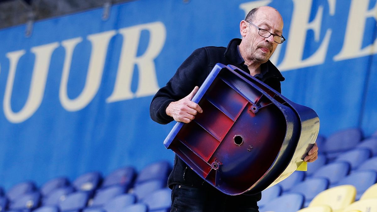 It giel en blau ferdwynt stadichoan út it âlde stadion yn Ljouwert. Trouwe supporters fan SC Cambuur, de seizoenkaarthâlders, mochten sneon fergees harren stuoltsjes ophelje as in persoanlik oantinken oan jierren fan sportive hichte- en djiptepunten.