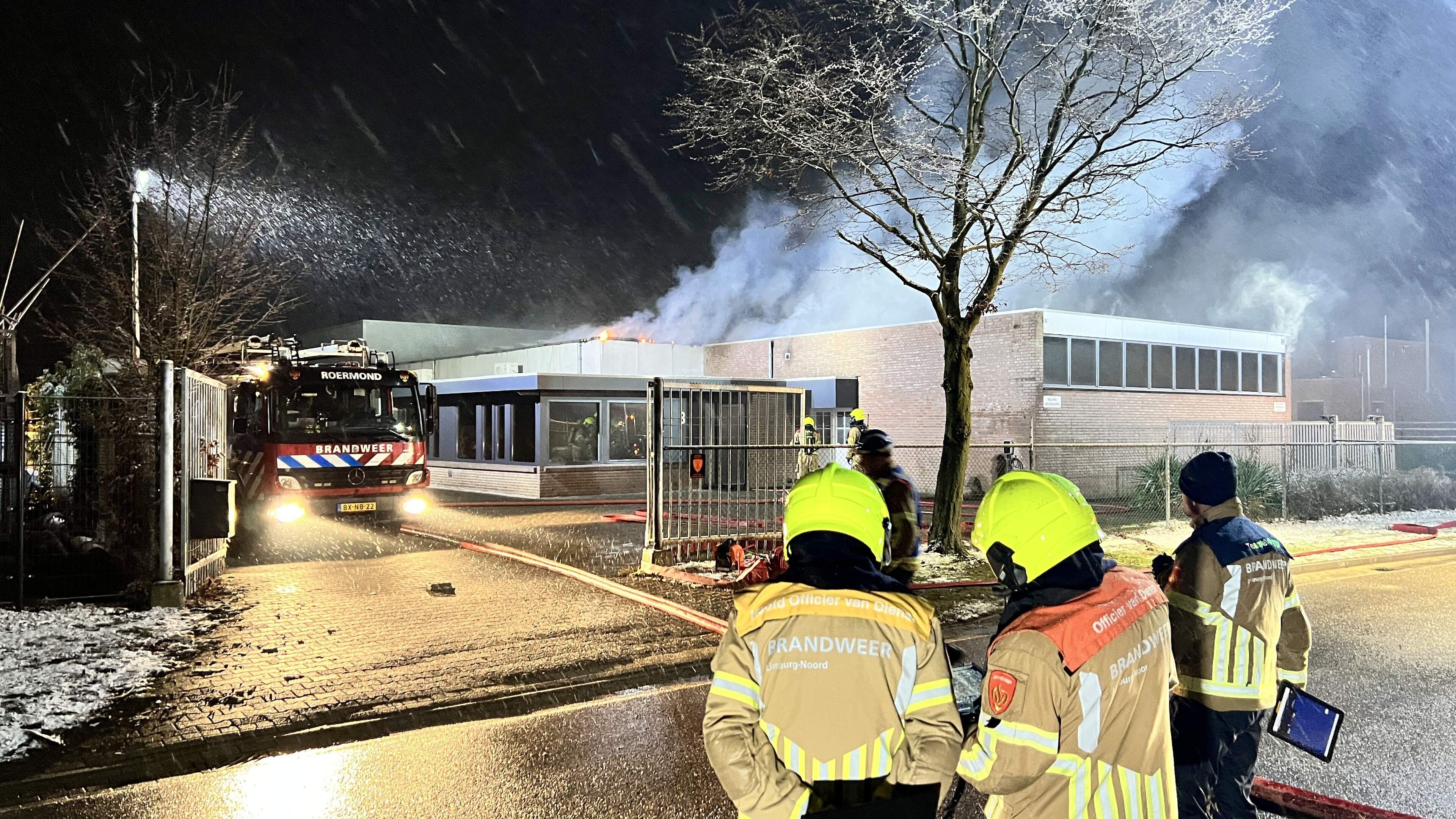 De brandweer werd om 02.30 uur gealarmeerd voor de brand in het gebouw aan de Windmolenven. Die bleek te woeden in een inpandig kantoor van een grote loods en er kwam veel rook vrij. Vanwege de grootte van de loods en de hevige rookontwikkeling werd opgeschaald naar ‘grote brand’, meldt de brandweer.