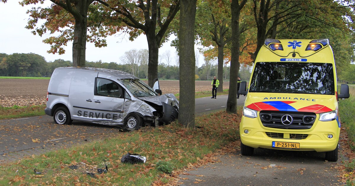 De inzittende van een werkbusje is maandagmiddag gewond geraakt na een frontale botsing met een boom op de Isidoorstraat in Haler. Het slachtoffer is naar een ziekenhuis vervoerd.