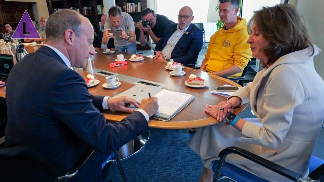 Heythuysen - 26 mei 2025 - Gemeente Leudal heeft de evenementenvergunning afgegeven voor het Oud Limburgs Schuttersfeest (OLS) dat dit jaar in Heythuysen plaatsvindt. Op 20 mei ondertekenden burgemeester Désirée Schmalschläger en gemeentesecretaris Han Geraedts de vergunningen aangevraagd door Stichting OLS Heitse 2025. Dit gebeurde in bijzijn van vice-voorzitter Jeanine Beckers en secretaris Ton Donders van de stichting. DeltaLimburg.nl was erbij:
