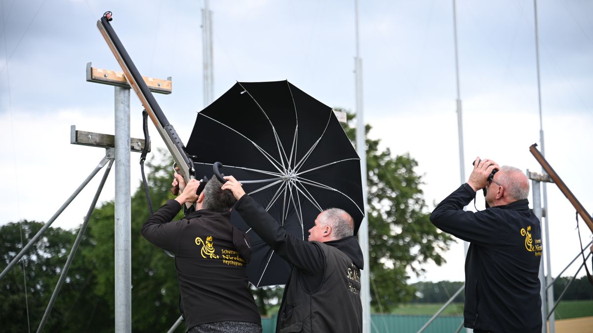 Tijdens de schietwedstrijden van het Oud Limburgs Schuttersfeest in Heythuysen, wordt de provinciale weg N273 gedeeltelijk afgesloten. De schietbomen staan opgelijnd langs de weg, en het is de bedoeling dat de kogels in een akker aan de overkant belanden.