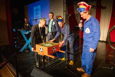 ANGEREN - Tot zijn stomme verbazing stond de secretaris van SV Angeren zaterdagavond tijdens de pronkzitting van carnavalsvereniging De Narrenpoel opeens op het podium met de middenstip van sportpark De Poel in zijn handen.