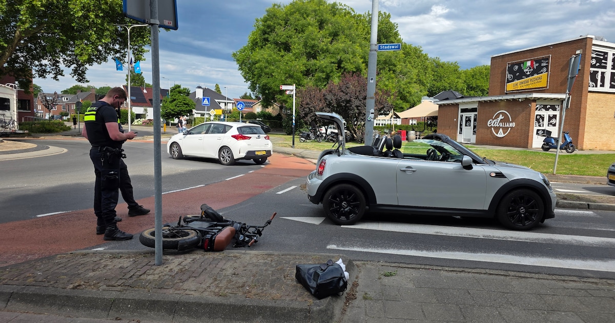 Een fatbike met twee opzittenden is zaterdagmiddag in botsing gekomen met een auto op de kruising tussen de Huismanstraat en de Stadswal in Huissen. De twee zijn gecontroleerd door het ambulancepersoneel.