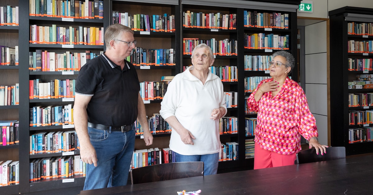 Tom Hemminga, schrijver van de dorpskrant, en Netty en Gladys Vos van breiclub Steekje Los: ‘Ik snap dat Driemonders zich achtergesteld voelen.’