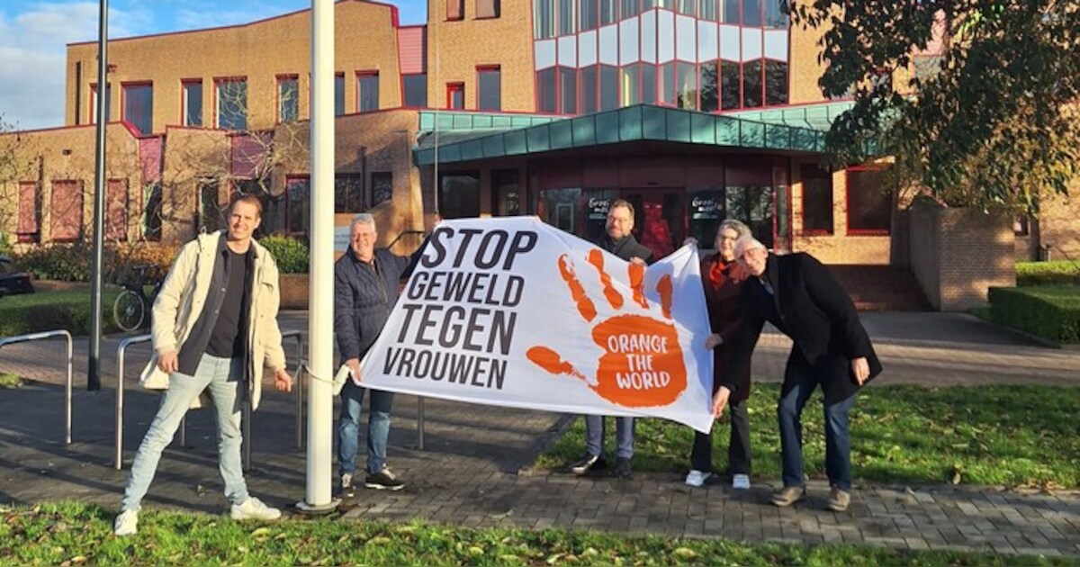 Bij het gemeentehuis in Wognum is gisteren de Orange the World-vlag gehesen. Burgemeester Michiel Pijl en wethouder Yannick Nijsingh vragen hiermee aandacht voor geweld tegen vrouwen.