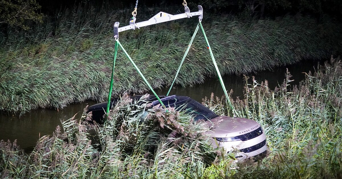 Een Range Rover is in de nacht van dinsdag op woensdag de sloot ingereden langs de Houtzaagmolen in Hoorn. Een kraan moest de dure auto, met een prijskaartje van bijna twee ton, uit het water tillen.