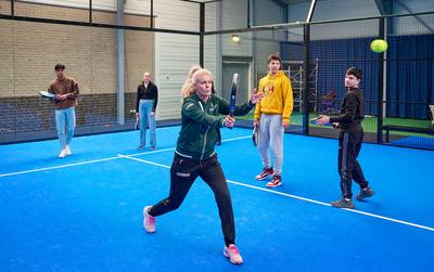 MARIAHEIDE - Sporten bij een vereniging is voor veel kinderen een ver-van-mijn-bed-show. Tennis- en padelpark De Krekel laat ze er aan snuffelen dit jaar, met steun van provincie en bedrijfsleven. Op de padelbaan gaan puberogen stralen. ,,En zo doe je de backhand”