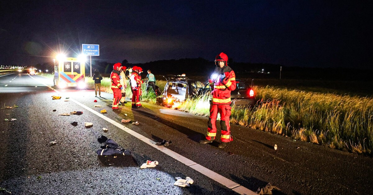 Twee auto's zijn maandagavond met elkaar in botsing gekomen op de A7 bij Zuidbroek. Of er gewonden zijn gevallen is niet bekend. De weg is in de richting van Zuidbroek afgesloten.