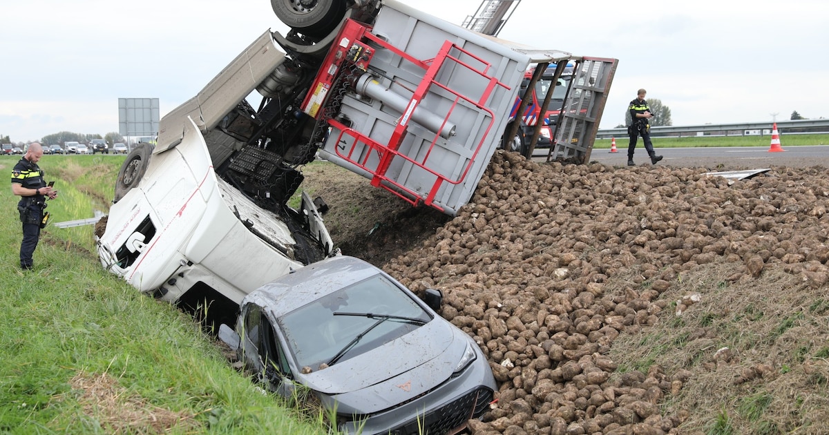 Op de A59 bij Fijnaart is vrijdagmiddag kort voor 15.00 uur een vrachtwagen met suikerbieten gekanteld. De lading lag verspreid over de snelweg. Tussen 21.00 en 04.00 uur werd nogmaals een rijstrook afgesloten voor uitgestelde bergingswerkzaamheden.