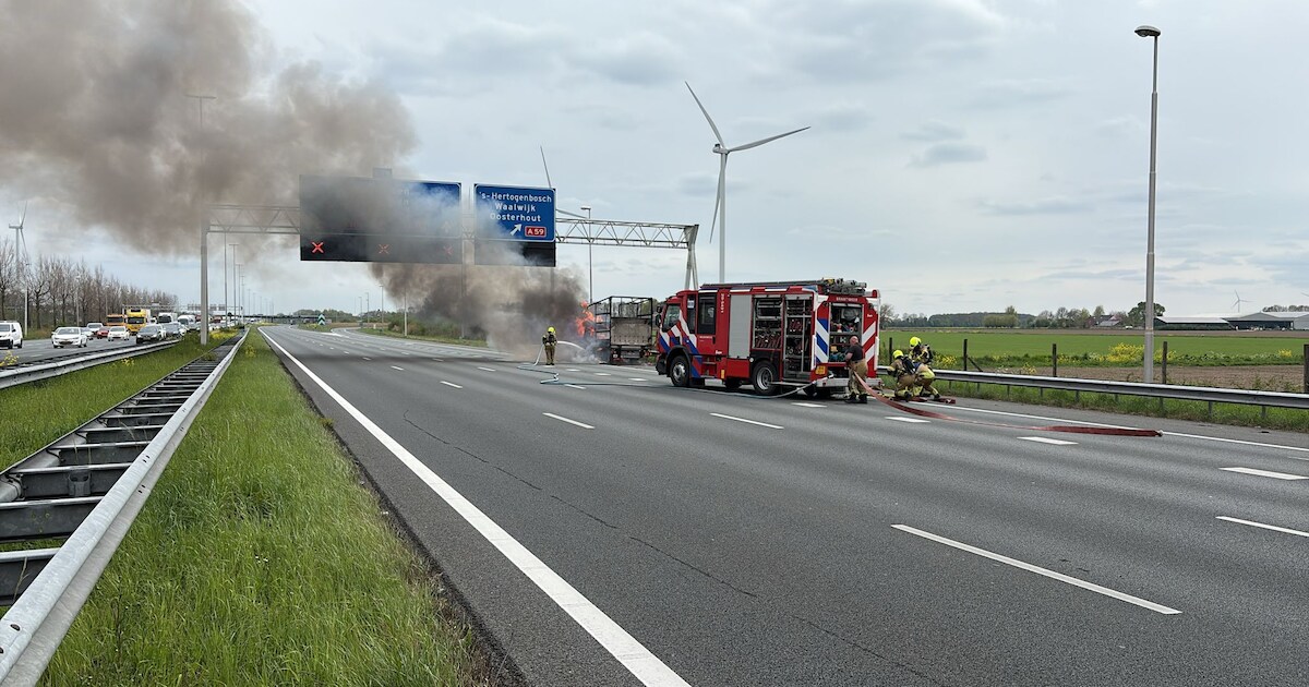 LANGEWEG/BREDA - Een bakwagen vloog woensdagmiddag in brand op de A16 bij Langeweg. Al snel schoten er hoge vlammen uit het voertuig. De brandweer ging eropaf. Door het incident was de weg in de richting van Breda voor een deel gesloten.
