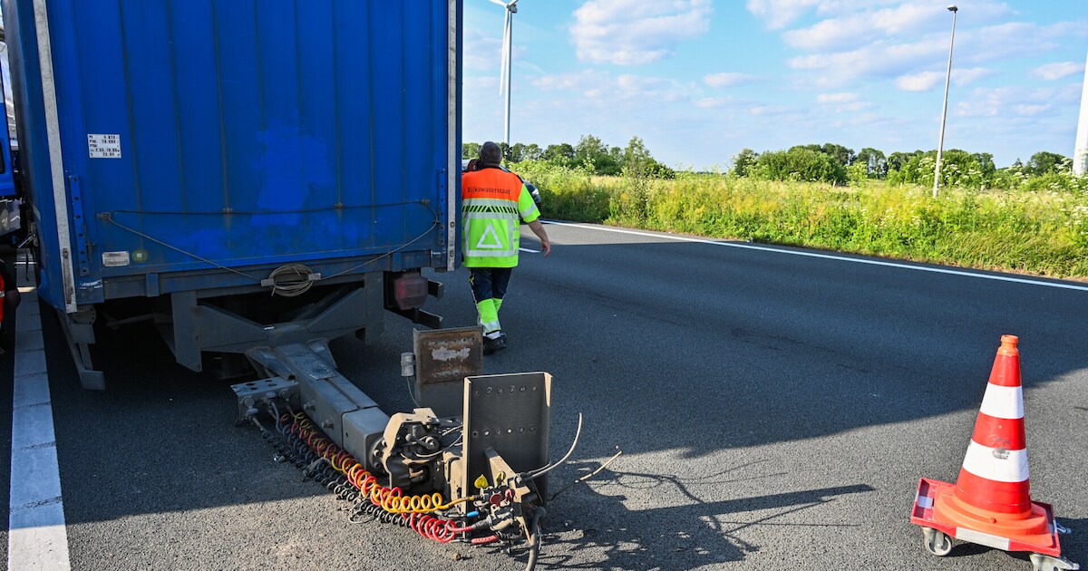 LANGEWEG - Op de A16 is er een sleepkar van een vrachtwagen afgebroken. Hierdoor botste er een tankwagen op de vrachtwagen op. Het ongeluk gebeurde op dinsdagochtend bij de Langeweg, Moerdijk. De rijstrook bij knooppunt Klaverpolder is dicht.