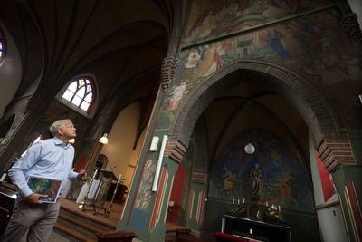 NIEUW-DIJK - Onno Ydema denkt dat het de parels zijn van de Nieuw-Dijkse gemeenschap. De kerkschilderingen die zijn vader Jacob tussen 1947 en 1951 in de Antonius van Paduakerk maakte, behoren volgens hem tot de mooiste van Nederland. ,,Je ziet hier het werk van een rijpe kunstenaar, die je in geen enkele kerk in die periode zag.’’
