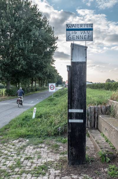 MIDDELAAR - Een knutselende actievoerder geeft met een bord langs de dijk bij Middelaar uiting aan zijn of haar ongerustheid over de toekomst van de Lob van Gennep.