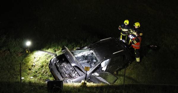 PLASMOLEN - Een auto is donderdagavond tegen een boom gereden op de N271 in Plasmolen. Vervolgens kwam de wagen via het fietspad in het weiland langs de weg terecht.