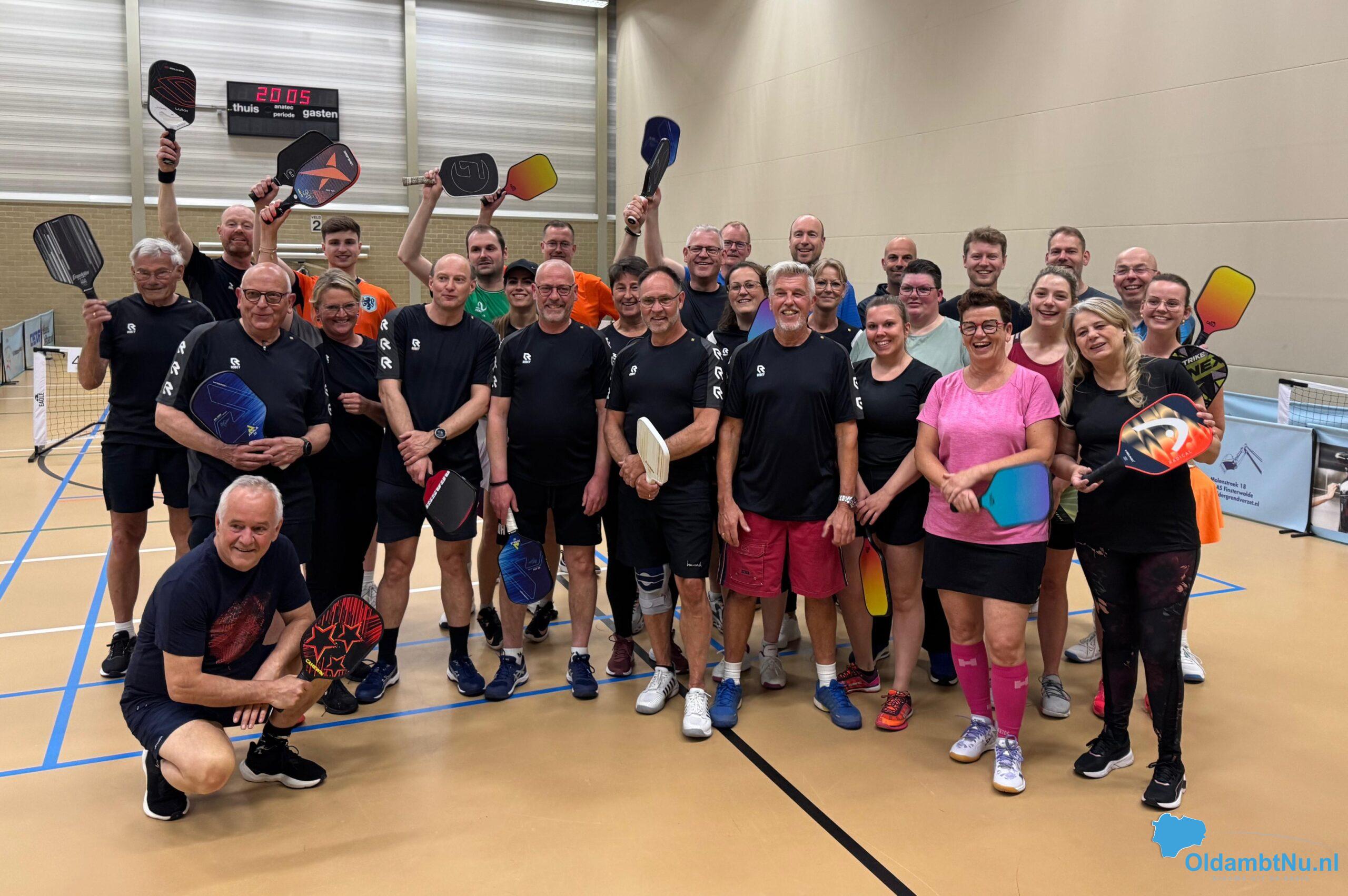 Finsterwolde – Afgelopen vrijdag 11 april was MFC de Hardenberg in Finsterwolde het toneel van een groot Pickleball toernooi. Pickleball is een combinatiesport van tafeltennis, tennis en badminton. Het is goed te spelen voor alle leeftijden. Dit was het eerste, grote toernooi georganiseerd door Pickleball vereniging Oldambt. Met ruim 35 deelnemers van meerdere verenigingen werd er gespeeld op 2 niveaus (recreanten niveau 1 en gevorderde spelers niveau 2) verdeeld over 7 indoorbanen. Na een korte opening door de voorzitter van de Pickleball vereniging werd er om 20.15 uur begonnen met het spelen van de wedstrijden. Er volgden 7 rondes, waar vooral werd gestreden om de eer.