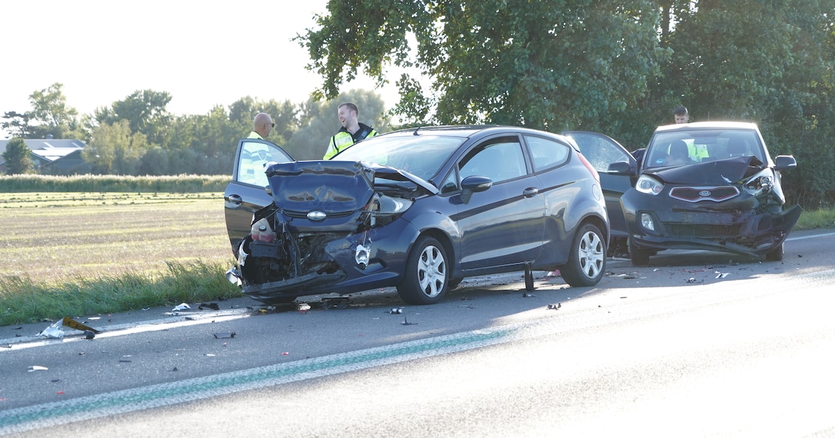 De N46 is dicht ter hoogte van de aansluiting met de N361. De auto's moeten worden weggetakeld.