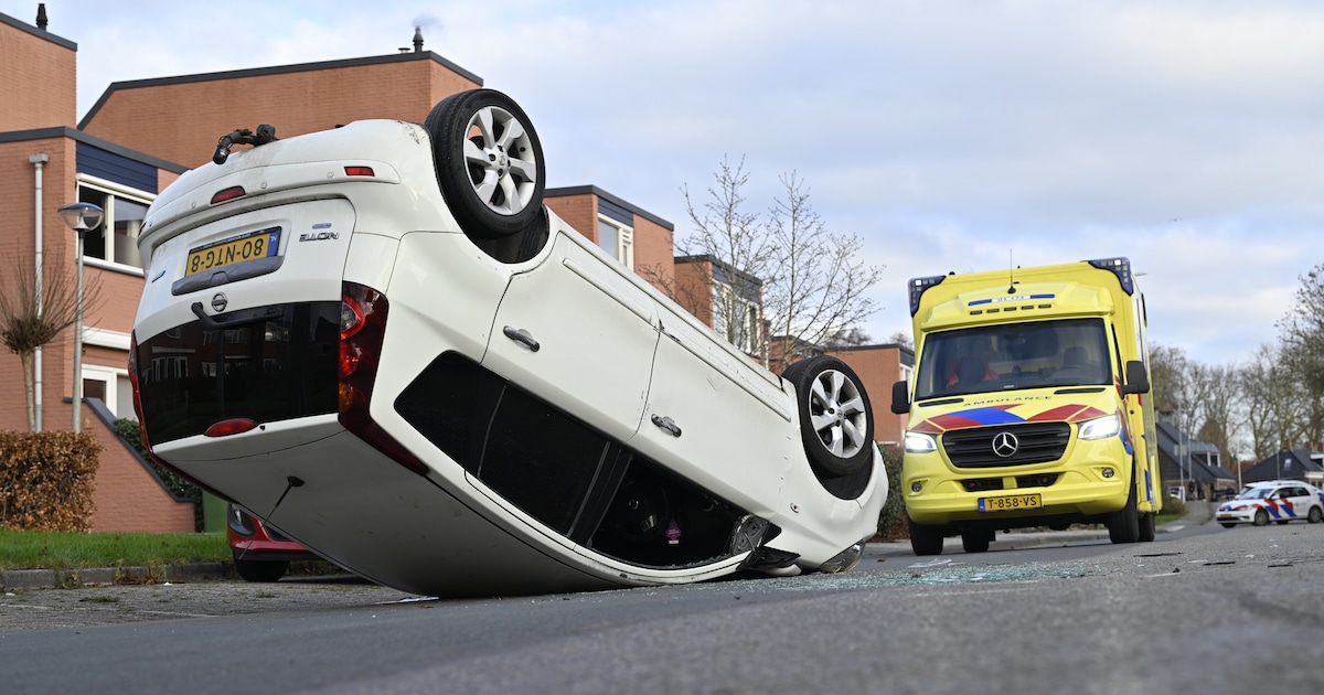 Een automobilist is op de Westersingel in Appingedam over de kop geslagen. De bestuurder raakte niet gewond.