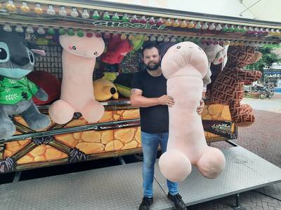 Hij deelt ze uit aan winnaars in z’n schiettent op alle kermissen waar hij staat. Logisch dus dat je bij de schiettent van Gradus van Dam op de Hengelose Lambertuskermis ook een piemel kunt winnen.