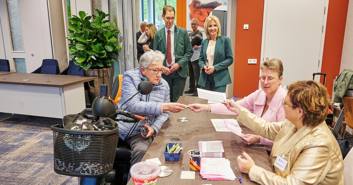 Arno van den Hout van het ministerie van Binnenlandse Zaken bezocht vandaag een stemlokaal in Boekel. Niet om te stemmen, maar om te kijken hoe kiezers omgaan met het nieuwe, kleinere stembiljet dat hier wordt gebruikt.