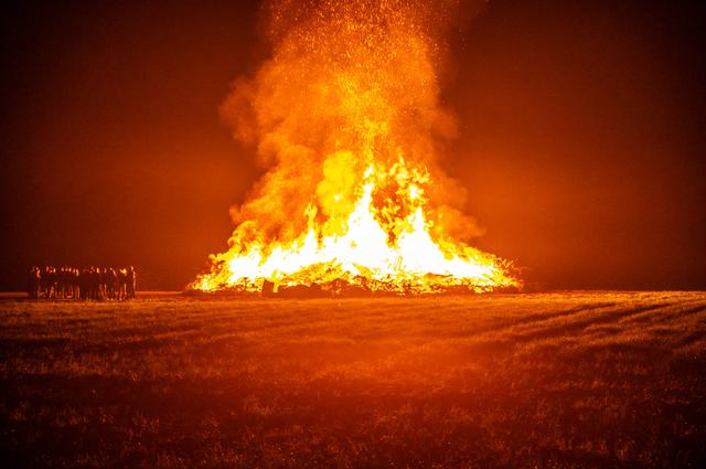 In Fochteloo werd in de nacht van zondag op maandag een paasvuur ontstoken. Foto: Noorderniews