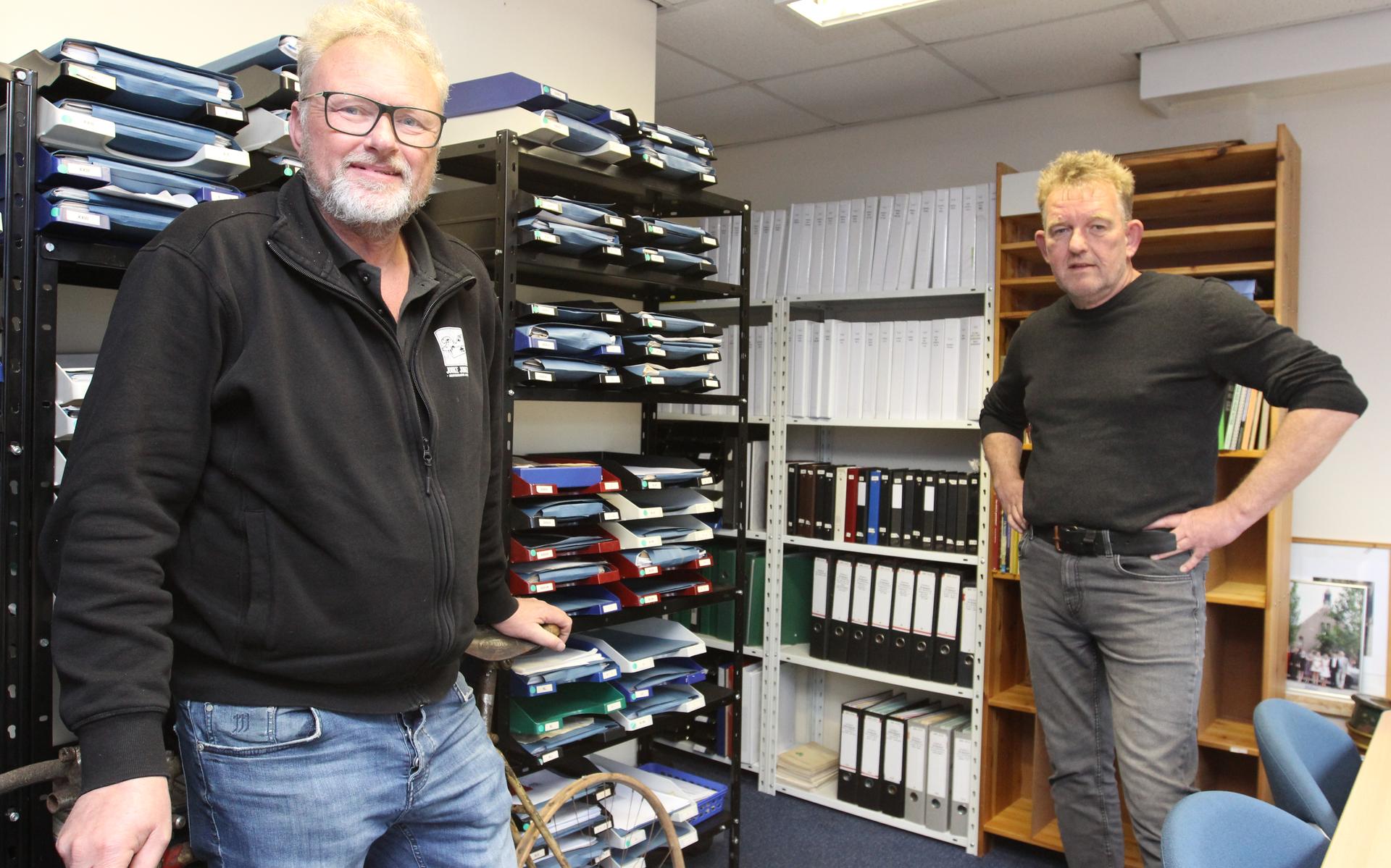 Jouke Jongsma (links) en Bert Rekker in het Documentatiecentrum in ruimte 16 van de voormalige basisschool. Foto: Jan Koops