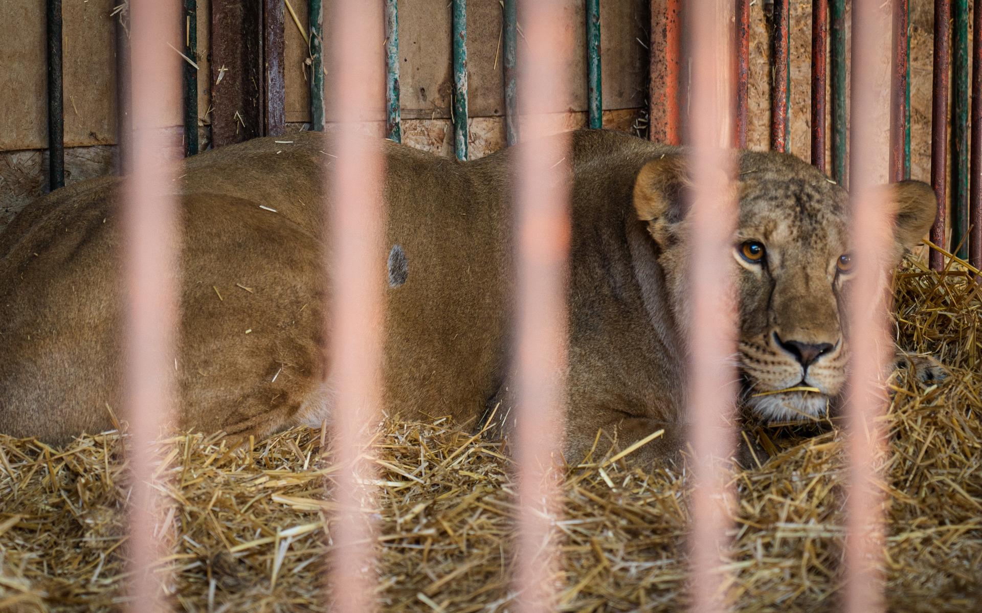De jonge leeuwin Vasylyna uit Oekraïne krijgt een veilig onderkomen bij Felida in Nijeberkoop Foto: FOUR PAWS/Oleksandr Makhach
