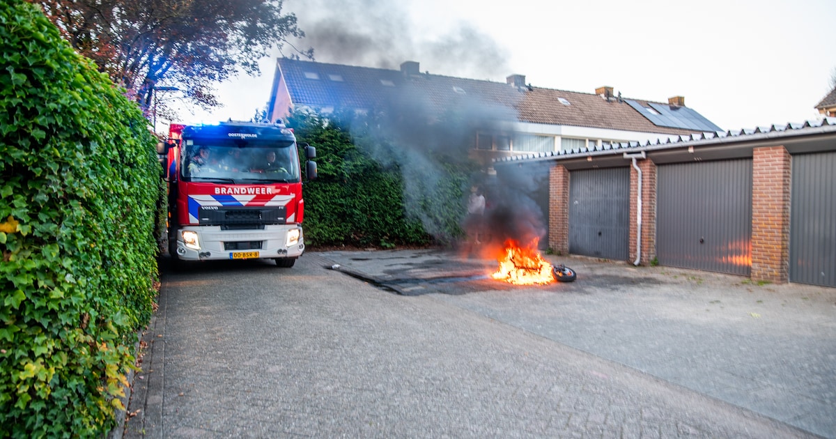 Een scooter is donderdagavond in vlammen opgegaan bij een aantal garageboxen aan de Assessorlaan in Oosterwolde. De brandweer heeft de vlammen gedoofd.