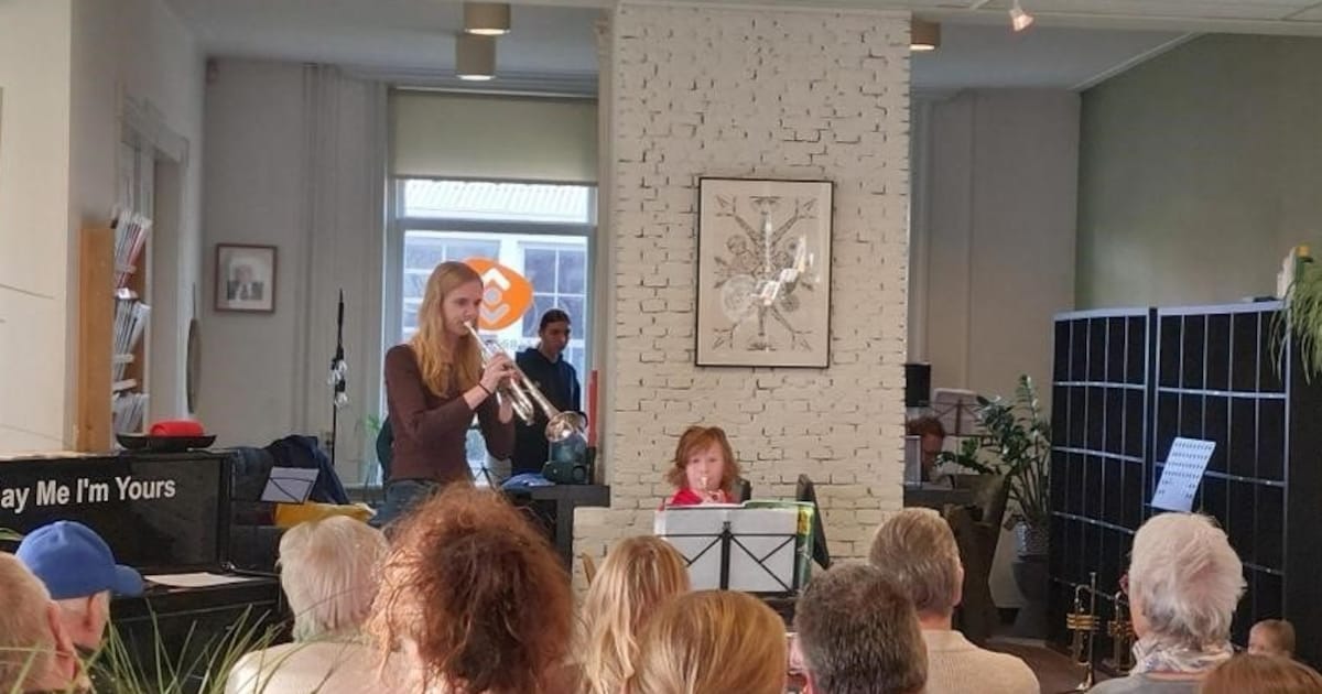 In de Bibliotheek Opmeer genieten bezoekers zaterdagochtend van live muziek. Bezoekers kunnen ontspannen met koffie of thee terwijl ze luisteren.