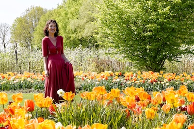 DEMEN - De zon schijnt, en overal bloeien de tulpen in de Tuinen van Demen. Het is dan ook een drukbezochte bollendag bij Martje van den Bosch.