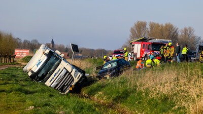 HERPEN/OSS - Op de A50 ter hoogte van Herpen vond donderdagmiddag een ernstig ongeval plaats tussen een vrachtwagen en een personenauto. Daarbij belandde de vrachtwagen in de sloot. De automobiliste is met spoed naar het ziekenhuis gebracht.